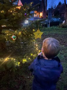 Am Freitag vor dem 1. Advent wurde von den Roseburger Kindern der Tannenbaum auf dem Spielplatz geschmückt. Kinder und Erwachsene stärken sich mit Punsch und Keksen. Später wurden Weihnachtslieder gesungen.